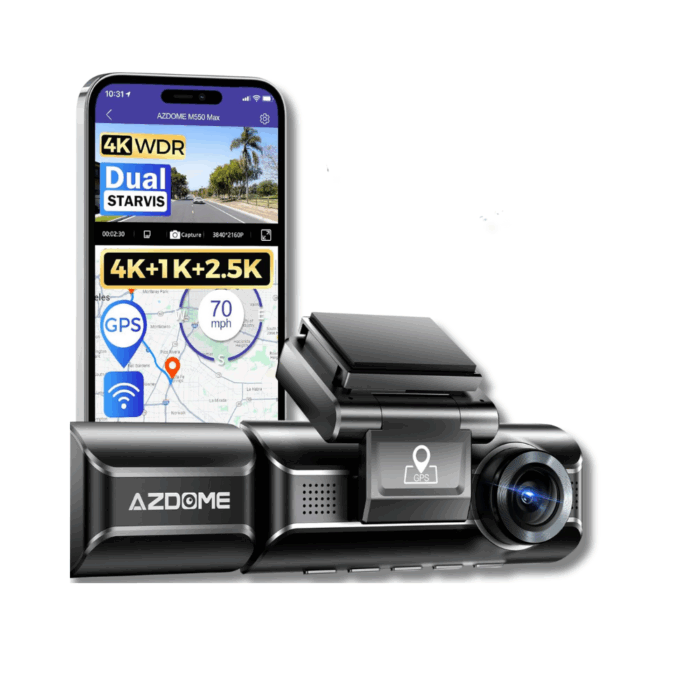 The new AZDOME M550 dash camera delivers crystal-clear 4K footage from the front and upgraded 2.5K footage from the rear. With 150 degrees of views of the front, cabin, and rear, this triple dashcam records simultaneously in 2.5K+1080P+2.5K, ensuring 360 degrees of protection. It’s the perfect companion for drivers and families on memorable road trips.